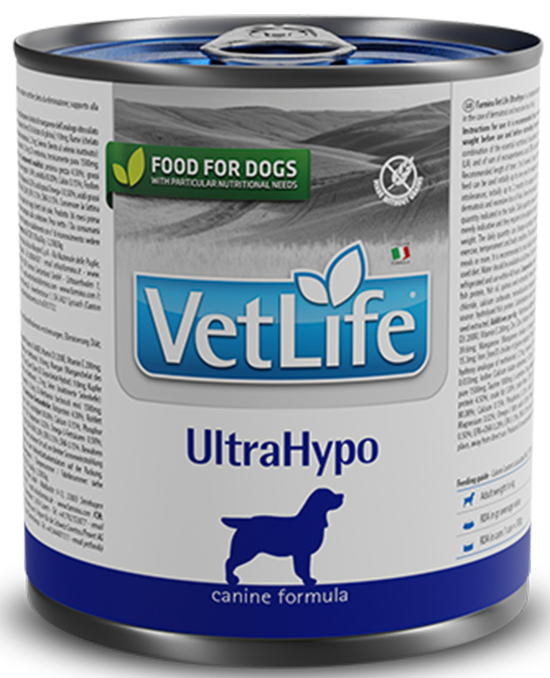 Farmina Vet Life UltraHypo yra dietinis visavertis pašaras suaugusiems šunims sudedamųjų dalių ir maistinių medžiagų netoleravimui mažinti; eliminacinė dieta; odos funkcijai palaikyti, kai gyvūnas serga dermatoze ir gausiai šeriasi.