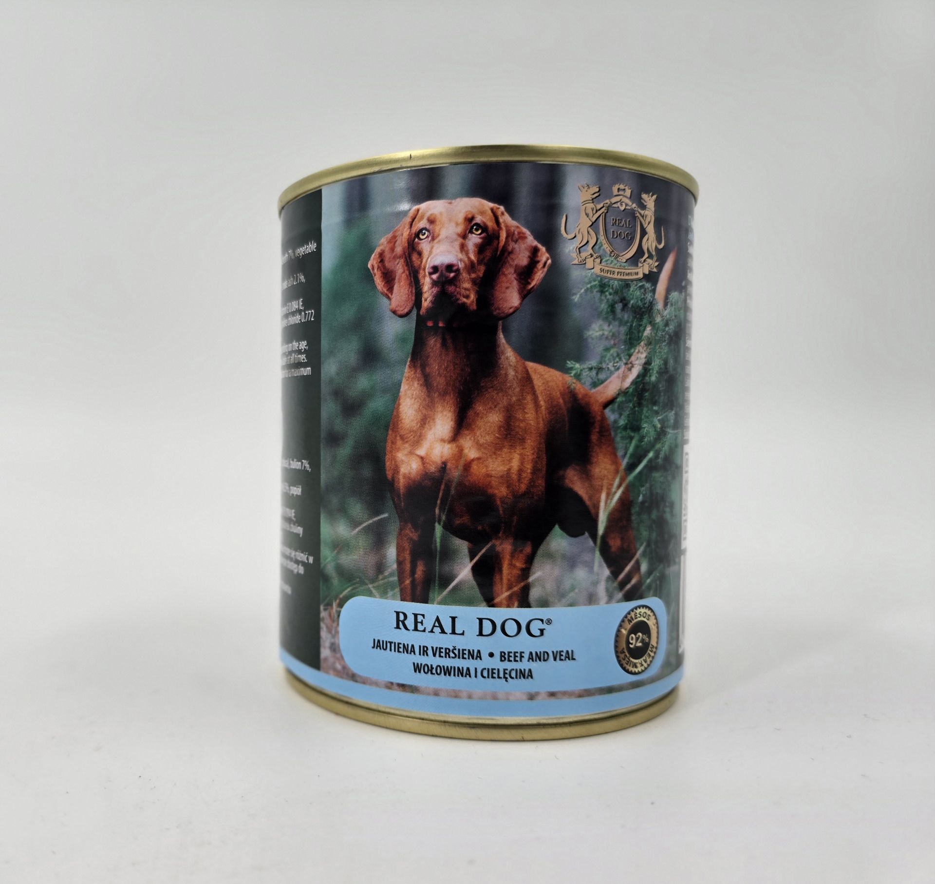 Konservuotas visavertis subalansuotas pašaras suaugusiems šunims su jautiena ir veršiena. Sudėtyje nėra dirbtinių dažiklių, aromatinių medžiagų ir konservantų.