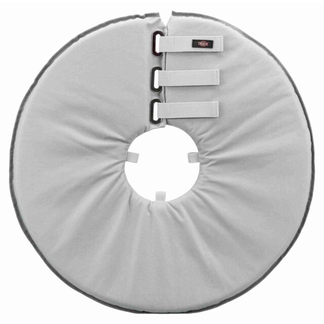Apsauginė apykaklė šunims ir katėms. Po operacijos arba susižeidus, šunys ir katės jaučia poreikį laižyti sužeistą vietą, todėl ji negali ramiai gyti. Šis apsauginis antkaklis neleidžia gyvūnams pasiekti žaizdos snukiu. Minkšta medžiaga leidžia jį patogiai nešioti ir gyvūnui patogiai gulėti nepaisant apsauginio antkaklio. Gerti, ėsti ir uostyti vis tiek galima be jokių problemų – regėjimas ir klausa taip pat beveik neribojami. Minkšta medžiaga leidžia patogiai šuniui jaustis; jokio užsikabinimo ar trankymosi į daiktus. Didelis apsauginės apykaklės spindulys šiek tiek riboja regėjimą. Tai gali kelti pavojų leidžiantis laiptais. Todėl tuo metu, kai augintinis nešioja antkaklį, laiptai turi būti uždaryti nuo augintinio, kad negalėtų lipti. Apykaklė su kilpomis antkakliui. Pagaminta iš poliesterio ir putos.