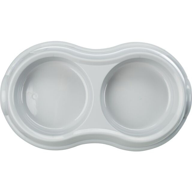 Dvigubas seklus plastikinis dubenėlis augintinų pašarui arba vandeniui. Neslysta dėl guminių kojų.