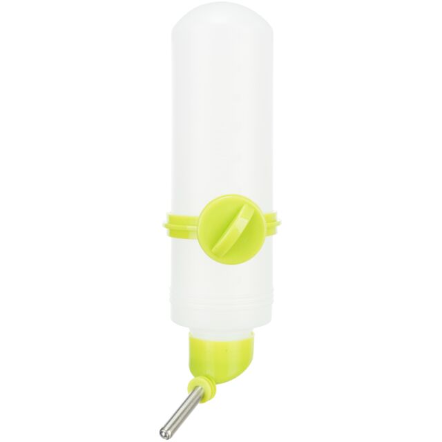 Girdykla triušiams. Sraigtinis tvirtinimas leidžia greitai pakeisti vandenį neišimant laikiklio; galima tvirtinti prie narvo strypų arba sienos; su rutuliniu vožtuvu; nerūdijančio plieno geriamojo vandens vamzdelis.