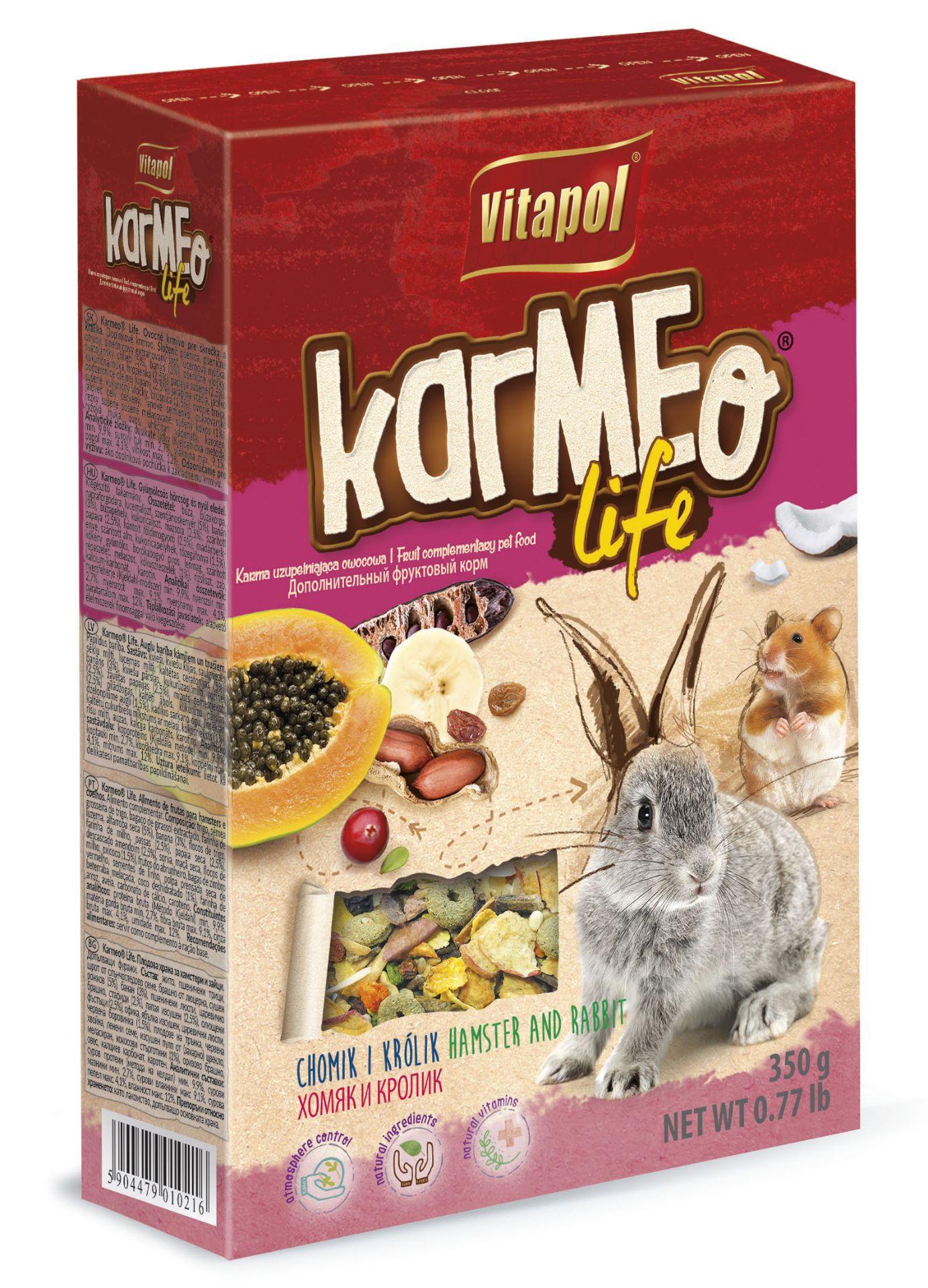 Papildomas mišinys žiurkėnams ir triušiams. Šis aukščiausios kokybės grūdų ir sėklų mišinys kartu su vitaminais praturtintomis granulėmis praturtintas dideliu kiekiu vaisių, suteikiančių natūralių vitaminų, mineralų ir pektinų. Tarp vaisių rasite obuolių, bananų, razinų, kokosų ir spanguolių. Lengvai virškinami obuoliai yra gausūs vitaminų, tokių kaip C, A, B1, B2, PP ir B3, taip pat mineralų, daugiausia kalio, fosforo, kalcio, natrio, magnio ir geležies. Kalis didina raumenų tonusą, o geležis, hemoglobino komponentas, prisideda prie deguonies tiekimo. Spanguolės pasižymi antibakterinėmis ir priešgrybelinėmis savybėmis.