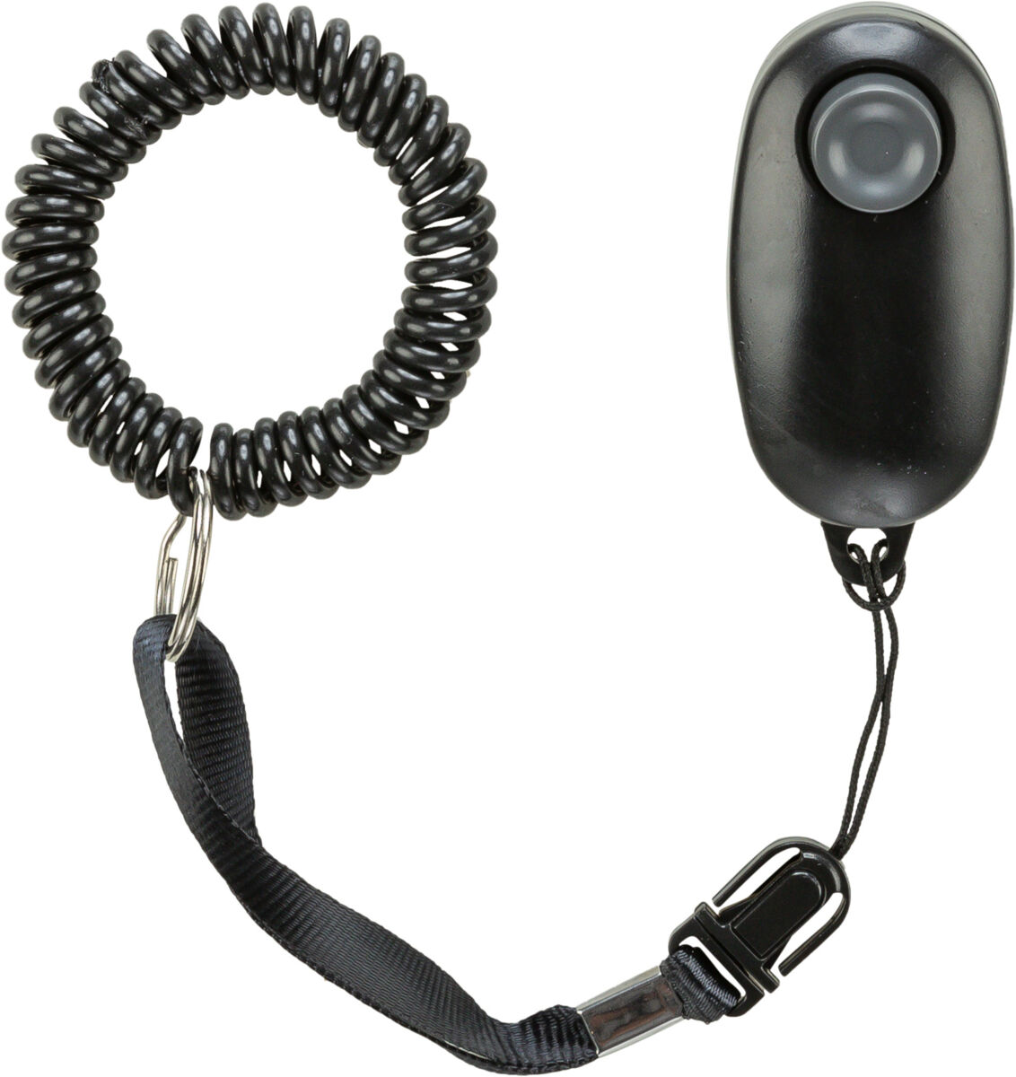 Puikiai tinka šuniukams ir jautriems gyvūnams. Švelnus, nuoseklus paspaudimo garsas; spiralinis kabelis tvirtinimui prie riešo; greitas užsegimas klikeriui nuimti