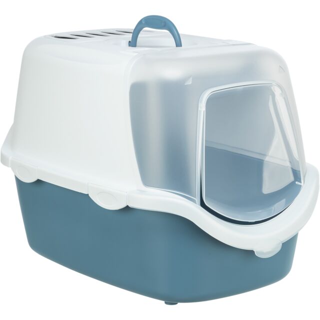 Plastikinis tualetas katėms su aktyvintos anglies filtru. Su kraiko samteliu. Lengvai užsegamos sagtys.