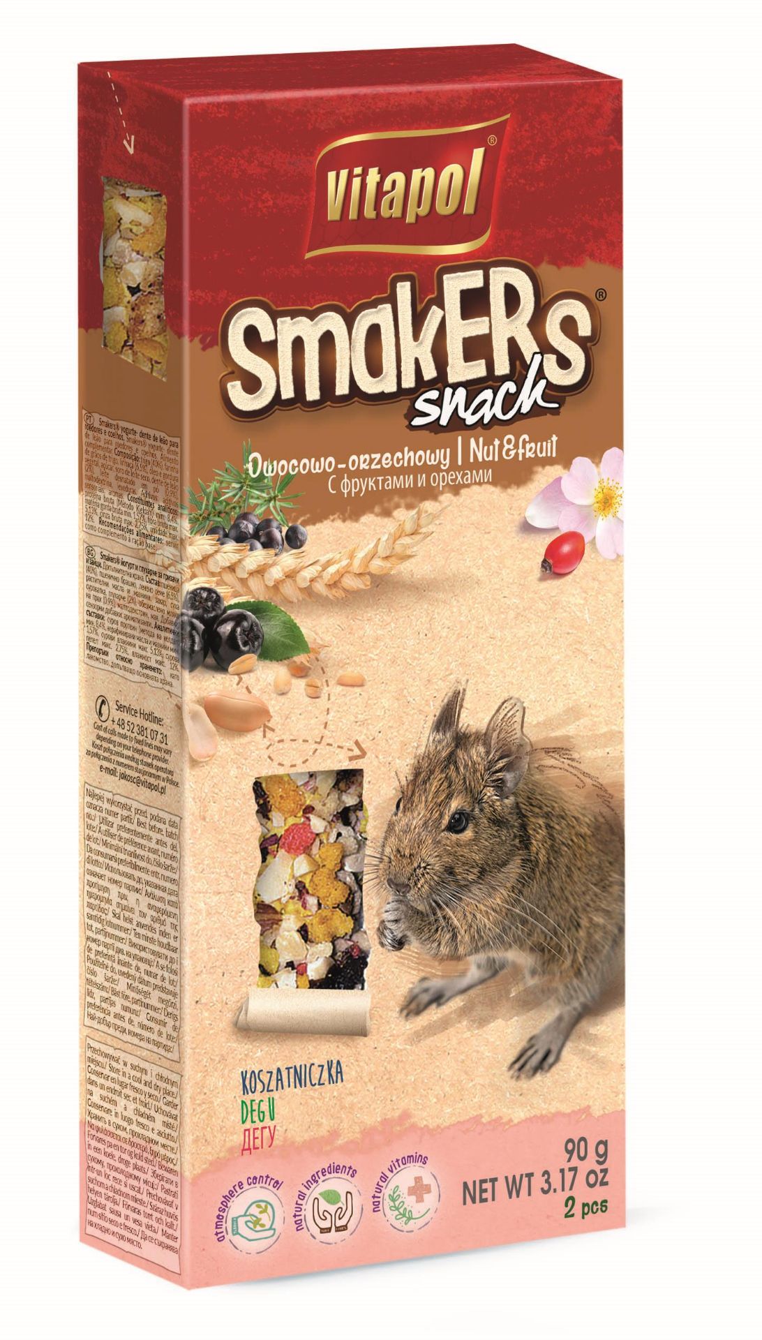 „Smakers“ paįvairina ir papildo degu racioną. Tai riešutų mišinys su šeivamedžių, aronijų, erškėtuogių ir kadagių uogomis, apibarstytas rožių žiedlapiais. Riešutai papildo racioną vitaminu E, kuris apsaugo nervų ir imuninę sistemas ir yra puikus antioksidantas. Jie taip pat yra gausus magnio, vitaminų B ir B1 šaltinis. Erškėtuogėse gausu vitaminų C, B1, B2, E, K, provitamino A, flavonoidų ir geležies.