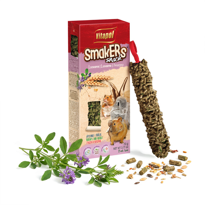 „Smakers®“ – vertingas aukštos kokybės augalinių baltymų šaltinis. Liucernoje yra daug beta karoteno, vitaminų B, C, D, E ir K, taip pat mineralų kalio, geležies, kalcio ir fosforo. Granuliuota forma skatina dantų dilimą graužikams ir triušiams.